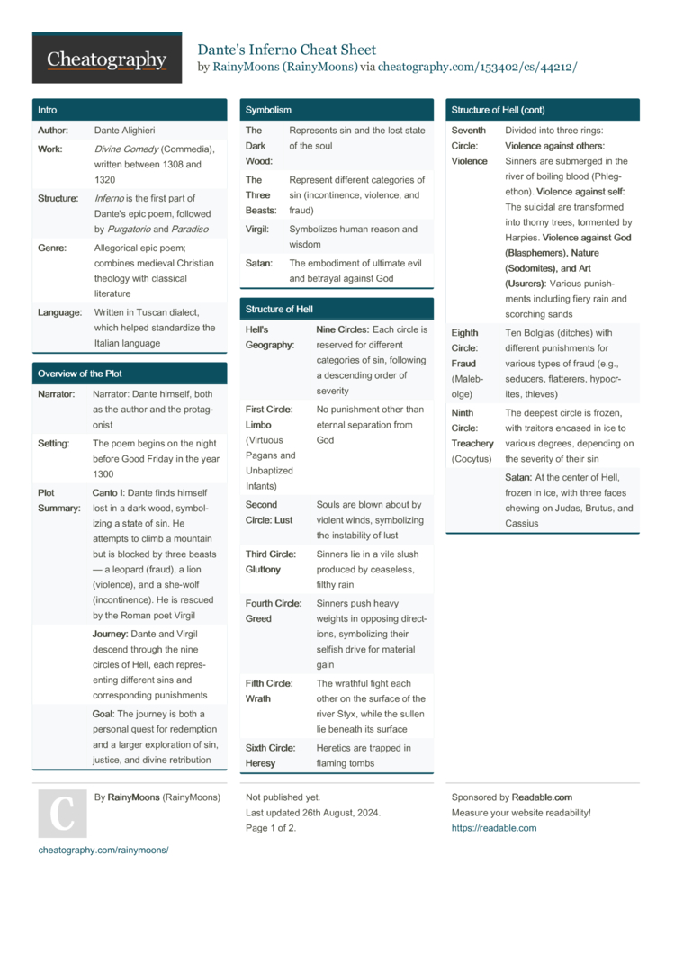 Inferno has had a profound influence on literature, art, and culture, shaping the Western conception of Hell |