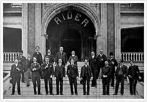 Participants of the tournament on the steps of the Hotel Rider, 1904