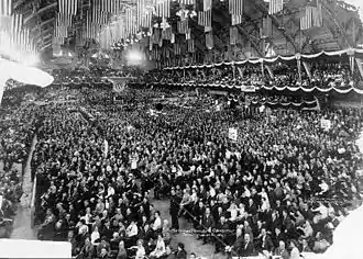 The main work of the convention was the platform, which set forth the new party's appeal to the voters. It was drafted in part by Charles McCarthy,[5] and included a broad range of social and political reforms advocated by progressives.[2][6]