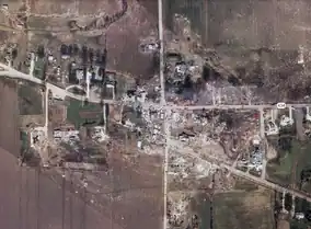![]() Aerial of Inverness, MS after the tornado. | |