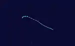 Isa developed from a disturbance in the monsoon trough near the Caroline Islands on April 12. It moved erratically at first, though after attaining tropical storm status it curved westward due to the subtropical ridge to its north. Isa very gradually intensified, and on April 20 the typhoon reached peak 1-min winds of 270 km/h (170 mph), as reported by the Joint Typhoon Warning Center; Japan Meteorological Agency reported maximum 10-min winds of 155 km/h (96 mph). After turning northward, it accelerated to the northeast, and merged with a larger extratropical cyclone on April 24.[7][8]