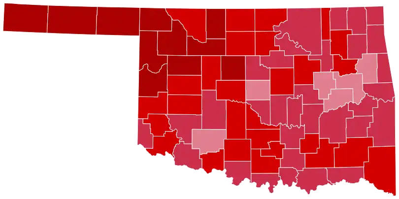 Barack Obama faced John McCain in the 2008 Presidential Election. McCain won a majority of the votes in Oklahoma and received all seven of the state's electoral votes. Oklahoma was the only state in which McCain received a majority of the votes in every county.[1]