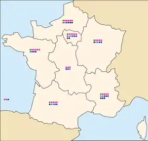 Due to the entry of Romania and Bulgaria in the European Union in 2007, the number of seats allocated to France was revised from 78 to 72 seats, a loss of 6 seats. France now represents only 9.8% of all European MEPs compared to 12.5% in 2004 and 19.8% in 1979, following the first European election.