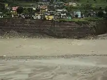 About 6000 citizens of Nepal were visiting the Indian region, of which 1,000 were rescued as of 22 June 2013.[37] Flooding of the Dhauliganga and the Mahakali rivers had caused extensive damage, with reports of 128 houses and 13 government offices swept away and over 1000 people homeless.[38][39] A bridge that joins the India-Nepal border was highly damaged.