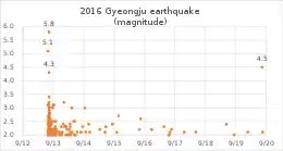 ![]() Magnitude of 2016 Gyeongju earthquake | |