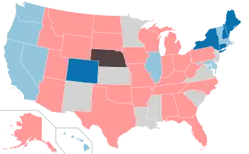![]() Map of upper house elections: Democrats gained control Democrats retained control Republicans retained control Non-partisan legislature No regularly-scheduled elections | |||||||||||||||||||||