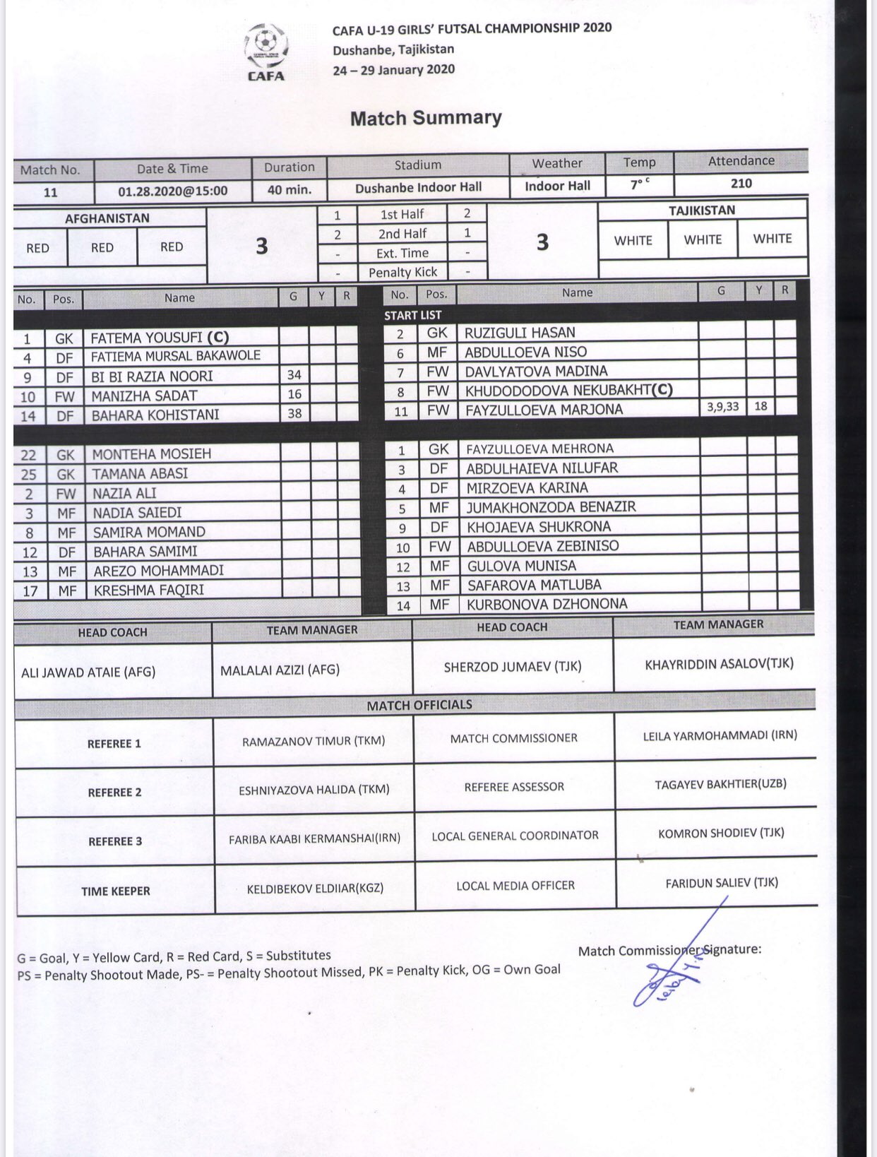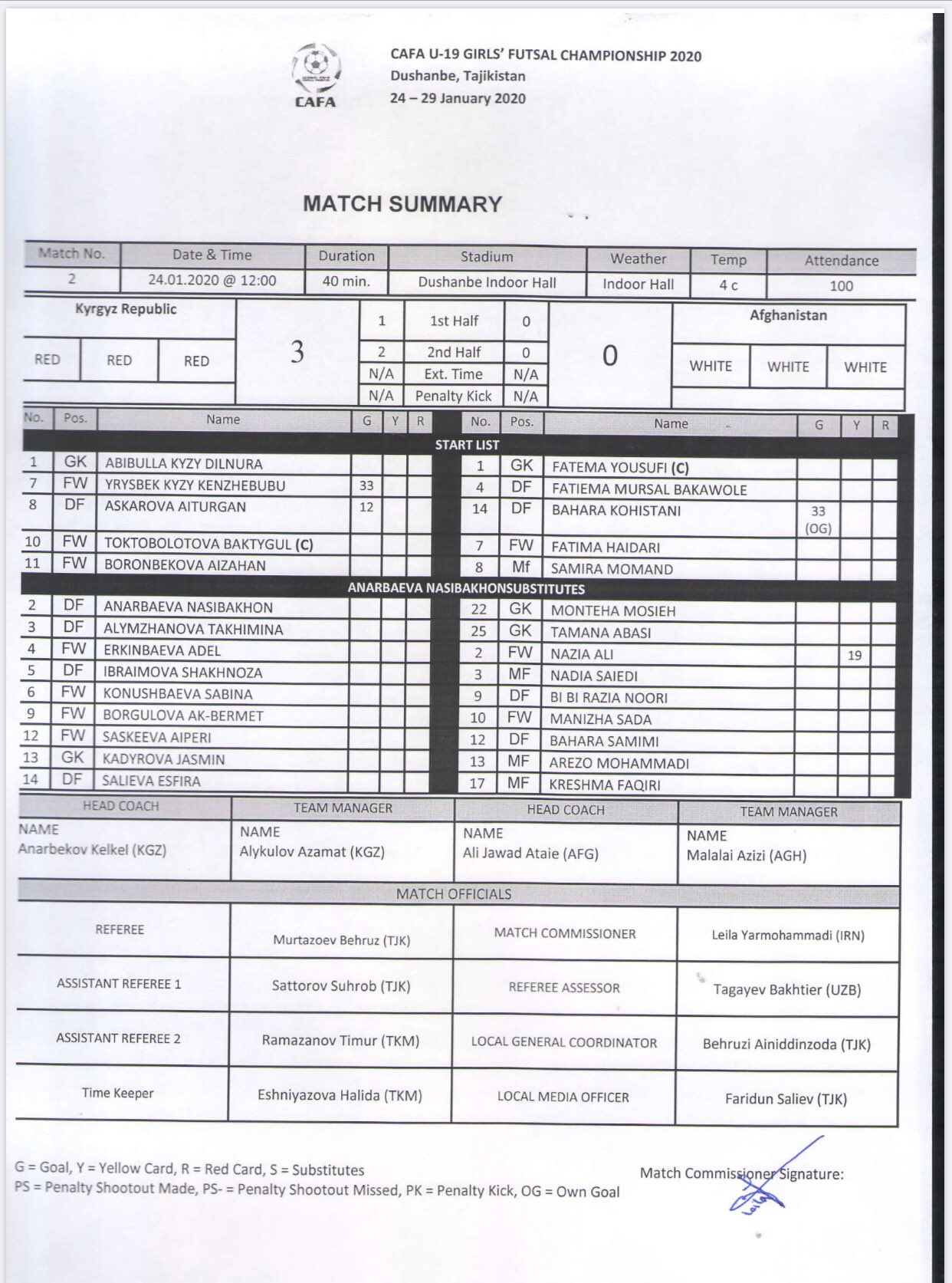 - ↑ "2020 CAFA U-19 Girls Futsal Championship starts in Dushanbe". avesta.tj (in Russian). 21 January 2020.