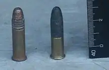 ![]() .22 Long Rifle – subsonic hollow point (left), standard velocity (center), hyper-velocity hollow point (right) | ||||||||||||||||||||||||