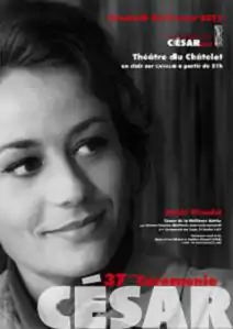 The 37th César Awards ceremony, presented by the French Academy of Cinema Arts and Techniques (Académie des Arts et Techniques du Cinéma), was held on 24 February 2012, at the Théâtre du Châtelet in Paris. The awards honoured the best films of 2011.[1] The Artist won six out of its ten nominations, including Best Film, Best Director (Michel Hazanavicius), Best Actress (Bérénice Bejo), and Best Cinematography (Guillaume Schiffman). The ceremony was chaired by Guillaume Canet, with Antoine de Caunes as master of ceremonies. Nominations were announced 27 January 2012.