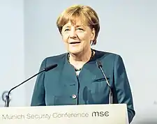 On the second day of the conference, Chancellor Angela Merkel described the great changes in foreign policy in her speech[29] and called for a new global order pattern, which would have to be developed 25 years after the end of the East-West confrontation.[30] The "world has radically changed, we have no fixed order," Merkel described the situation.[31] At the same time, she promoted a liberal, worldwide multilateralism based on international structures worth fighting for.[32] The Chancellor included amongst others NATO, which has grown in importance due to Russian annexation of the Crimea and the "conflicts in the east of Ukraine, during which Russia supported the separatists". Russia had violated the crucial principle of the territorial integrity of states which peace and security depended upon, Merkel continued. The Chancellor confirmed that the threats and challenges for the security of the West repeatedly highlighted by the American side were real. Therefore, "we need the military force of the United States of America."[31]