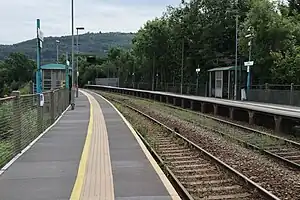 Aber railway station is a railway station serving the town of Caerphilly, south Wales. It is a stop on the Rhymney Line 8+1⁄4 miles (13.3 km) north of Cardiff Central on the Valley Lines network.