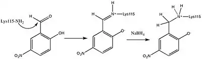 - ↑ Schmidt, Donald E.; F.H. Westheimer (1971). "pK of the Lysine Amino Group at the Active Site of Acetoacetate Decarboxylase". Biochemistry. 10 (7): 1249–1253. doi:10.1021/bi00783a023. PMID 4324206.