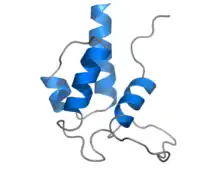- ↑ Weber T, Baumgartner R, Renner C, Marahiel MA, Holak TA (April 2000). "Solution structure of PCP, a prototype for the peptidyl carrier domains of modular peptide synthetases". Structure. 8 (4): 407–18. doi:10.1016/s0969-2126(00)00120-9. PMID 10801488.