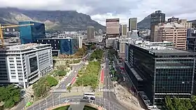 ![]() ![]() From the top, an aerial down Adderly Street with Table Mountain in the background. A view of Adderley Street from ground level. | |