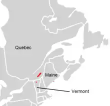 Adiantum viridimontanum is narrowly distributed in New England and Quebec. At least seven stations in Vermont lie in the Missisquoi Valley, in the northern Green Mountains, giving the fern its common name. The ultramafic rocks of this area extend northwards into Quebec, where as of 2001, eight stations were known in southern Quebec and six in the Thetford Mines area.[16] It is also known from one station on serpentine on Deer Isle, Maine.[17][18]