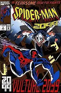When the original Spider-Man is brought to the year 2099 due to two companies (one in 2099, the other in the past) experimenting with extra-dimensional generators, he fights and defeats the Vulture before meeting his successor, Spider-Man 2099.[82]