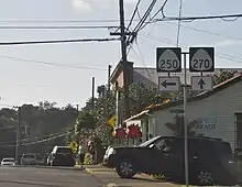 The signs of Hawaiian State Routes 250 and 270, in Hawi, Hawaii