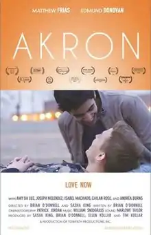 Akron (Stylized as AKRON) is a 2015 independent, LGBT themed romantic drama film directed by Brian O'Donnell and Sasha King. The film stars Matthew Frias, (who previously starred in the sports film When the Game Stands Tall), as Benny, and Edmund Donovan as Christopher. The film portrays Benny and Christopher meeting during a football game at the University of Akron, where they fall in love. Their budding relationship is threatened by the knowledge that their respective families first met years before, during a tragic accident. The film also stars film and stage star Andréa Burns. The film has earned several awards, including Best Feature Film, at numerous film festivals in the United States.
