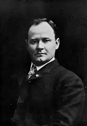 Godfrey Chealander proposed the idea for the fair. Chealander was then Grand Secretary of the Arctic Brotherhood, was involved in the Alaska Territory exhibit at the 1905 Lewis and Clark Exposition in Portland, Oregon. Originally, he pitched William Sheffield of the Alaska Club and James A. Wood, city editor of the Seattle Times on the idea of a permanent exhibit in Seattle about Alaska. This merged with Wood's desire for an exposition to rival Portland. They soon gained the backing of Times publisher Alden J. Blethen—remarkably, for the time, without gaining the opposition of the rival Seattle Post-Intelligencer.[1] Among other early proponents of the exposition was John Edward Chilberg, one of a line of prominent Seattle merchants in the Chilberg family, who was president of the Alaska Club, and was then given the title of president of the Exposition.[2]