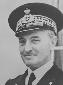 He was then transferred to the Navy Ministry in Rome, where he became the director of military personnel and services.[1] He was in Rome when the armistice of Cassibile was announced.[1] According to one source, after the war the High Commissioner for the Epuration of the Public Administration accused him of not opposing the Germans while in Rome in the days of the armistice; of having left all the documentation of his office to Captain Carmine D'Arienzo, whom was known to have adhered to the Italian Social Republic; and of having written a list of all the officers of the Italian Navy in Rome on September 8, which then ended up in German hands.[3] According to the official history of the Italian Navy, published in 1971, Parona instead had the list destroyed and, during the German occupation of Rome, co-operated with the Clandestine Military Front, a Resistance organization that included several high-ranking officers of the Italian armed forces.[4]