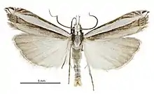 Angustalius malacelloides is a moth in the family Crambidae. It was described by Stanisław Błeszyński in 1955.[1] It is found in the Himalayas, India, Sri Lanka, China (Guangdong), Malaysia, Java, Australia (Tasmania) and New Zealand.