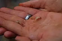 The Madison Cave isopod's reproduction mechanism is currently unknown. In related isopod species, females incubate fertilized eggs in a ventral marsupium after mating, though this has never been observed in any captured Madison Cave isopod.[5] It is inferred that the species has a low reproductive potential, as the majority of samples consist of very few to no juveniles and no egg-bearing females.[5][3]