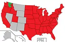 The states of Oregon, California, Idaho, and Utah, all areas of the eastern United States, and all "foreign countries where apple maggot is established" have also been placed under quarantine by Washington.[18] In addition to these areas, as of 2017, all or portions of the state's counties of Chelan, Clallam, Clark, Cowlitz, Grays Harbor, Island, Jefferson, King, Kitsap, Klickitat, Lewis, Lincoln, Mason, Pacific, Pierce, Snohomish, Spokane, Skagit, Skamania, Thurston, Wahkiakum, Whatcom, and Yakima, are also quarantined.[18]