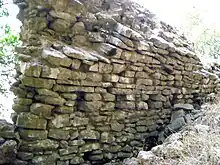 The castle was built already in Byzantine times, and was of strategic importance as it lay at the mouth of the mountain pass (droungos) leading from the coastal plains of Elis to Skorta and the interior of the peninsula.[2] The origin of the Greek name is unclear and has been much debated, including proposals that it means "mountain cage", or linking it with Herakles, although no sanctuary of his is known to have existed in the area.[3] Similarly, the Western name in its various forms (Bucel[l]et, Bucello, Polcellecto, Porcelle, Bucel[l]etto) is of unclear origin.[4]