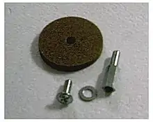 A third type of mandrel is that which is used to hold circular saw blades, buffing wheels (used for polishing), and sanding discs onto drills, circular saws, and similar power tools. A mandrel of this type generally consists of a cylinder, threaded on one end, with a washer brazed onto the threaded end and an accompanying screw and second washer used to clamp the circular saw blade, sanding media, or other rotary tool onto the mandrel.