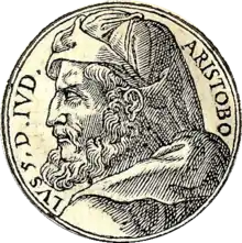 ![]() Aristobulus I, woodcut designed by Guillaume Rouillé. From Promptuarii Iconum Insigniorum. | |