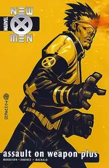 "Assault on Weapon Plus" is the title of a four-part storyline which ran through New X-Men #142 - #145 (September - December, 2003). It was written by Grant Morrison and pencilled by Chris Bachalo.