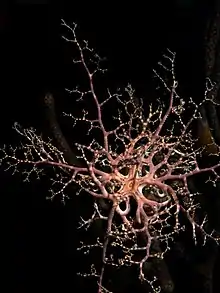 Astrophyton muricatum, the giant basket star, is an echinoderm found in shallow parts of the tropical western Atlantic and throughout the Caribbean Sea and the Gulf of Mexico.[1] It is the only species in the genus Astrophyton.[2] During the day, it curls up into a tight ball shape to protect itself from predators. At night, it climbs to an elevated point to feed by extending its intricately branched feeding arms in a bowl-like shape in order to snare passing plankton and other organisms from the current.