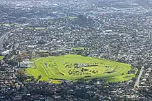 Ellerslie Racecourse is the main racecourse in Auckland, New Zealand, for thoroughbred racehorses. It is an undulating, grass circuit in the suburb of Ellerslie, with a circumference of just under 1,900 metres. Racing is conducted in a clockwise (right-handed) direction.