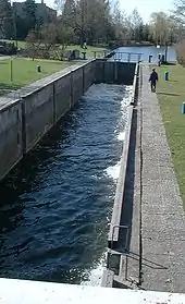 The Augustów Canal remained, after completion, an inland waterway of local significance that was used for commercial shipping and to transport wood to and from the Vistula River and Neman River.[9] The canal was used to transport the flour, salt, grain, chalk, gypsum, etc. In Augustów a large port was built in addition to a number of tow paths for horses to pull barges upstream. The canal was designed for the passage of vessels up to 40 m long, up to 5 m in width and capable of carrying up to 10 tons of cargo.[8]