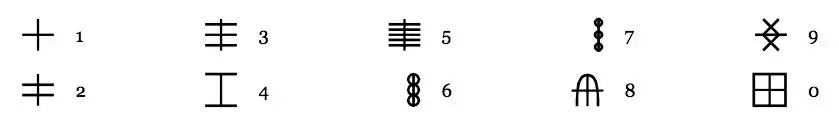 The digits of Avoiuli script. There are also digits for higher numbers.