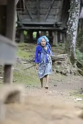 The Baduy also observe many mystical taboos. They are forbidden to kill, steal, lie, commit adultery, get drunk, eat food at night, take any form of conveyance, wear flowers or perfumes, accept gold or silver, touch money, or cut their hair. In agriculture, they practice pukukuh by not changing the contour of the land for their fields,[14] so much so that the way of farming is very simple; not cultivating the land using plows or forming terraces, but only using hoe-farming methods, that is, with sharpened bamboo. In the construction of houses, the contouring of the soil surface is also left as is, therefore the poles of the Kanekes houses are often not of the same length.[14] Words and actions of the Baduy people are expected to be honest, innocent, without beating around the bush, and devoid of bargaining in trade. Other taboos relate to defending Baduy lands against invasion: they may not grow sawah (wet rice), use fertilizers, raise cash crops, use modern tools for working ladang soil, or keep large domestic animals.