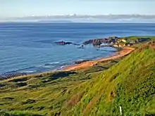 Ballintoy (from Irish Baile an Tuaigh 'the northern townland') is a small village, townland (of 274 acres)[1] and civil parish in County Antrim, Northern Ireland. It is alongside the B15 coast road, 28 km (17 mi) north-east of Coleraine, 8 km (5.0 mi) west of Ballycastle and between it and Bushmills. It is in the historic barony of Cary.[1] The village lies about one kilometre from Ballintoy Harbour, a small fishing harbour at the end of a very small, narrow, steep road down Knocksaughey hill which passes by the entrance to Larrybane and Carrick-a-Rede Rope Bridge. The harbour is host to a dawn service on Easter Sunday each year.