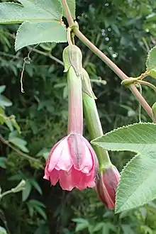 Banana passionfruit (Passiflora supersect. Tacsonia), also known as taxo and curuba, is a group of around 64 Passiflora species found in South America.[1][2] Most species in this section are found in high elevation cloud forest habitats. Flowers have a cylindrical hypanthium.