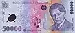 | 50,000 L | 155 × 70 mm | Violet | George Enescu, Carnation | Romanian Athenaeum, musical chord from "Oedip King" | 2001 | 14 December 2001 | ||||