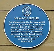 The family seat of the Earls Cowper was Panshanger in Hertfordshire. Other seats included Wrest Park in Bedfordshire, Brocket Hall in Hertfordshire, Melbourne Hall in Derbyshire and a townhouse at 4 St James's Square.