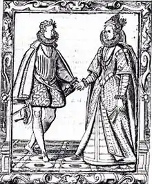 The basse danse was often followed by a tourdion, due to their contrasting tempi, and these were danced and composed in pairs en suite like the "pavane and galliard" and the "allemande and courante".[5][6]