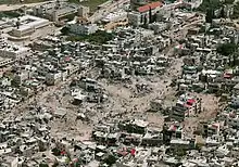 ![]() Aerial photograph of the battle area in Jenin, taken two days after the battle ended | |||||||