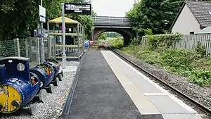 There is a small car park at the station, in which there are cycle racks and lockers. On the platform, there is a modern waiting shelter, in which there is a payphone.[14] As there are no facilities to purchase tickets, passengers must buy one in advance, or from the guard on the train.