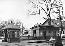 The grade crossing of Main Street (Route 20) at the station was proposed for elimination in 1913 and 1923; it was finally replaced by a bridge slightly to the east in 1935–36 – the first grade crossing elimination conducted as a Works Progress Administration project.[2][3][4]