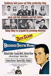 Because They're Young is a 1960 American drama film directed by Paul Wendkos and starring Dick Clark as Neil Hendry, an American high-school teacher who tries to make a difference in the lives of his students. The film co-stars Tuesday Weld, Michael Callan, Warren Berlinger, Roberta Shore, Doug McClure, Victoria Shaw and Stephen Talbot. The screenplay was based on Harrison High, a 1959 novel by John Farris.
