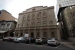 Belgrade Town Hall building is located at 1 Uzun Mirkova Street, in Belgrade, and has the status of the cultural monument.[1] It was built around 1846, during the reign of Prince Aleksandar Karađorđević, and is located on the site of the former Great bazaar. In the second half of the 19th century, the area around the Great Bazaar was the venue of the administrative and educational life of the capital. The hotel worked until 1869, when the name "Serbian Crown" was overtaken by the restaurant at 56 Knez Mihailova Street . During the period of almost one century, the building at the Great Bazaar served the needs of Belgrade municipality. The building was constructed as two-storey object with classically shaped front facade, whose symmetry was achieved with the shallow central Avant-corps with attic above the cornice. The reconstructions and the addition of the floor from 1928 significantly changed the appearance of the building. Today`s facade is dominated by the monumental fluted semi-columns in the ground floor zone, and lunette windows. Nowadays, Yugoslav Film Archive is placed in the building.