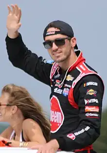 After finishing ninth in series points in 2012,[9] Kennedy was named by Fox Sports as one of NASCAR's "drivers 25 and under to watch" in January 2013.[11] In April 2013, Kennedy won his first career race in the K&N Pro Series East, in the series' first race held at Five Flags Speedway in Kennedy's native Florida.[12] Kennedy also announced that he would be driving a truck prepared by Turner Scott Motorsports in three Camping World Truck Series races in the 2013 season,[13] running in events at Bristol Motor Speedway, Iowa Speedway and Homestead-Miami Speedway;[14] he ran a total of five races, posting a best finish of fourth at Martinsville Speedway.[15] He was named the K&N Pro Series East's Most Popular Driver for the 2013 season.[16]