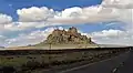Bennett Peak is a 6,471-foot (1,972-meter) elevation summit located on Navajo Nation land in San Juan County of northwest New Mexico, United States.[3] It is a landmark set one mile west of U.S. Route 491, along with Ford Butte on the opposite side of the highway. Bennett Peak is one of the major diatremes of the Four Corners area, and with significant relief as it rises 1,175 feet (358 meters) above the high-desert plain.[1] It is situated about 22 miles (35 km) south of Shiprock, the most famous of these diatremes. Bennett Peak is set in the northeastern part of the Navajo Volcanic Field, a volcanic field that includes intrusions and flows of minette and other unusual igneous rocks which formed around 30 million years ago during the Oligocene.[5] Bennett Peak lies within the Chaco River drainage basin.
