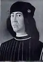 Giovanni II Bentivoglio | 1 October 1463 | 2 November 1506 | Son of Annibale I. He tried to maintain peace with ambitious neighbourhoods Medici, Sforza and the Holy See. Became a vassal of Cesare Borgia in 1501. After internal turmoils, he fled from Bologna in 1506, who was conquered by Pope Julius II. Died in Milan two years later.[7] |