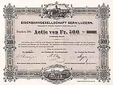The entire share capital of the Bern-Lucerne Railway was lost when it went bankrupt in 1876, although a considerable amount of rent was paid to the canton of Bern from 1882 on.